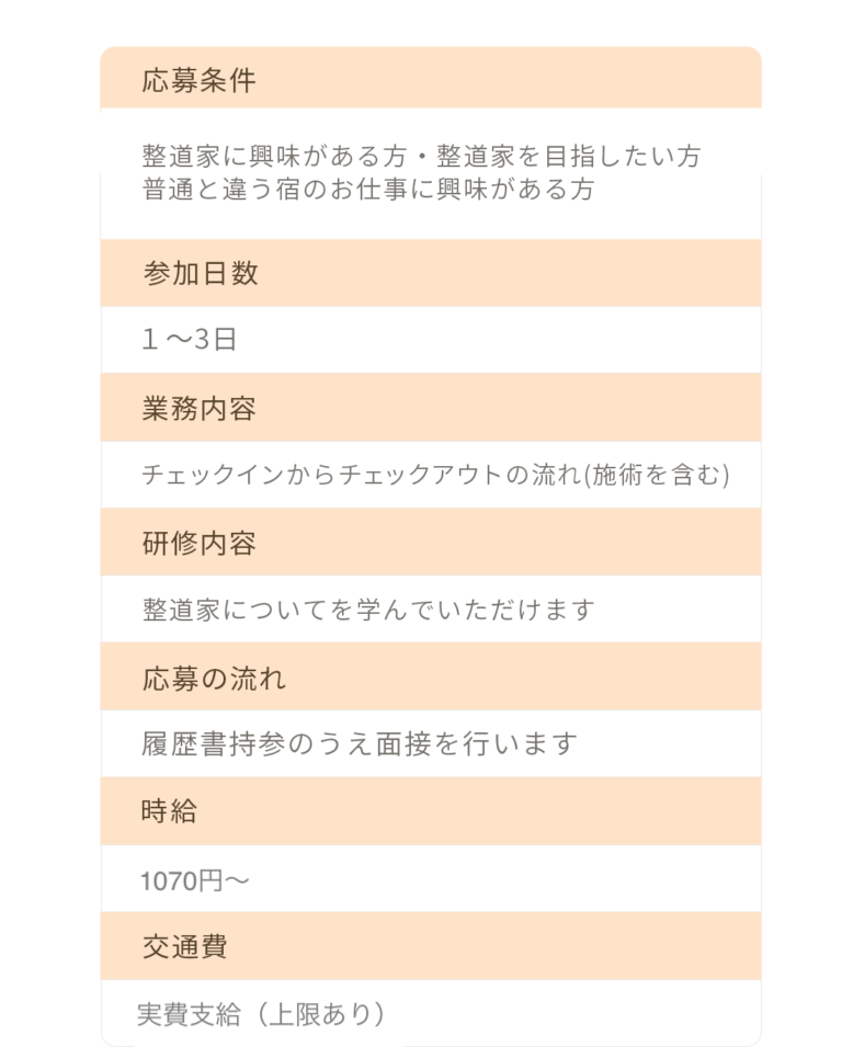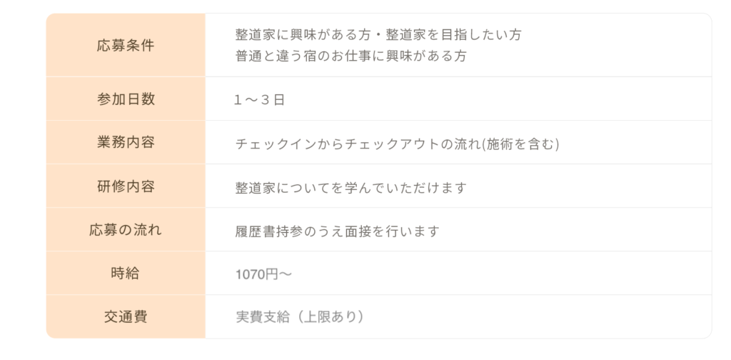 ここはお客様の心身を正常に誘い、かつご自身と向き合っていただく健康道場型のお宿です。呼吸を正常な状態に誘える施術者『整道家』候補の特待生を募集します!